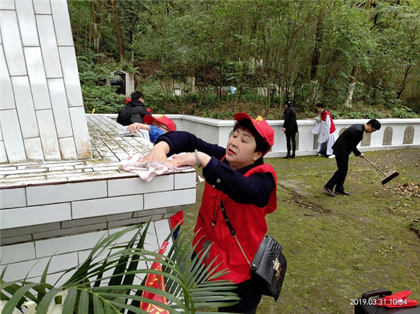 3月31日,岳池县义工联合会组织义工来到县城凤山公园烈士陵园,开展“缅怀革命先烈·弘扬民族精神”为主题扫墓活动。