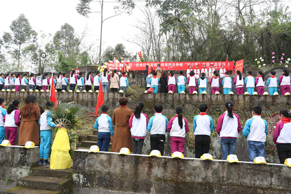 当日,四川省广安市广安区北仓路小学五年级近200名少先队员到奎阁烈士陵园开展“缅怀革命先烈 传承红色基因 ”祭英烈暨争做“河小青”志愿者游学活动,通过敬献花篮、献上菊花、聆听革命先烈故事、重温入队誓词、合唱红歌等低碳环保方式缅怀先烈英烈,表达哀思,接受爱国主义教育,并通过捡拾渠江河边垃圾等方式争当“河小青”志愿者。