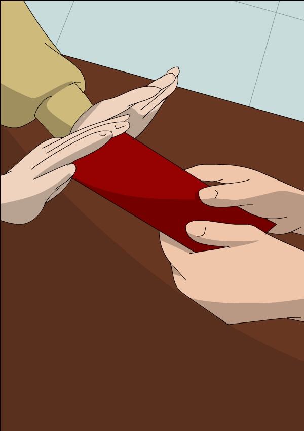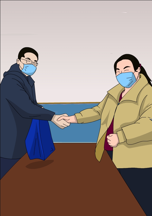 第一幅:“大姐,您真是我的贵人!谢谢!太感谢你了……”范先生接过自己失而复得的钱包,激动地握着苏洪琳的手连连表达谢意。“不用谢,物归原主,这是我们应该做的。”苏洪琳露出质朴而带些腼腆的笑容,连连摆手说。