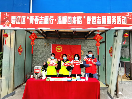 在铜仁旅游客运站、老铜仁客车站开展“青春志愿行 温暖回家路”春运志愿服务活动。志愿者们为返程乡友提供引导咨询、行李搬运等服务,为有需要的旅客提供免费口罩、红糖姜茶以及泡面等物资,同时发放疫情防控、就业、文旅、生态环境保护等宣传资料并提醒旅客在返乡途中做好防护。