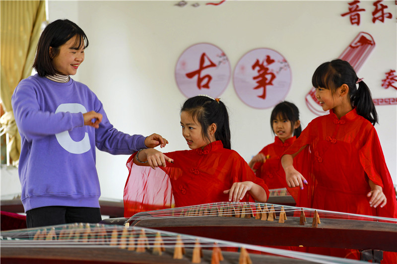学生学习弹古筝