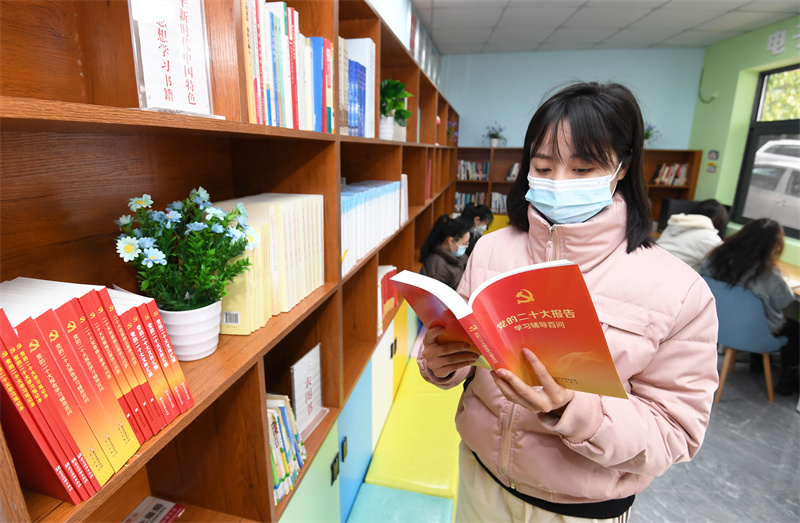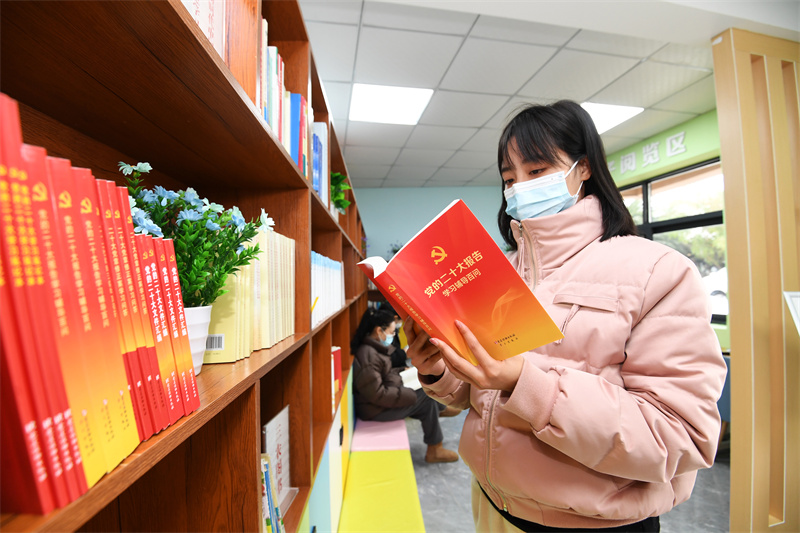 市民在贵阳市南明区图书馆望城分馆阅读党的二十大精神读本