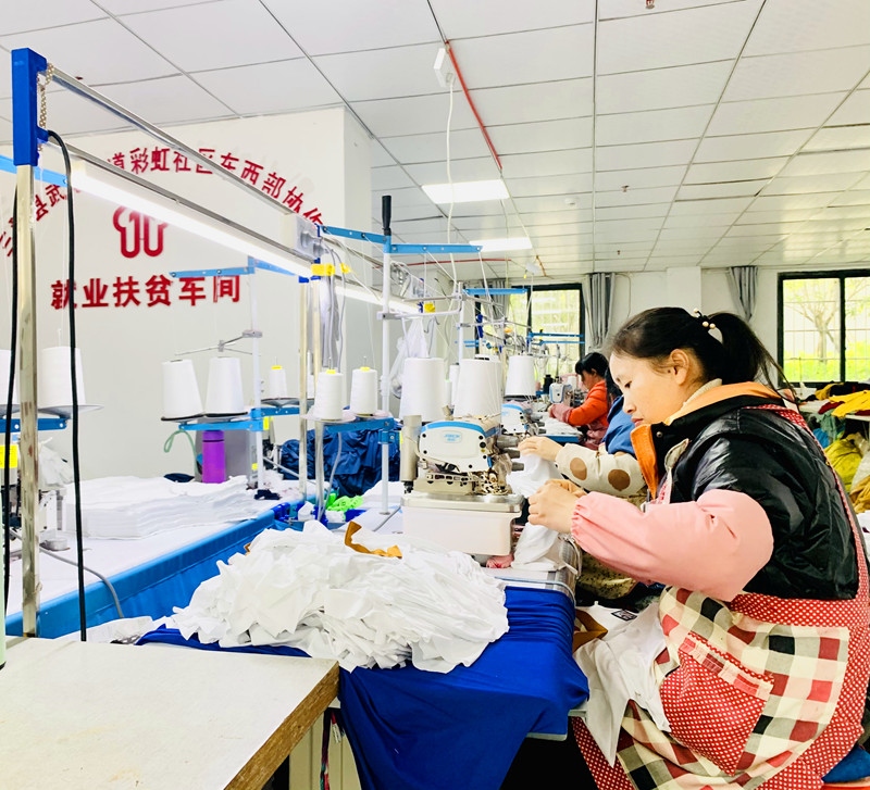 抓好培训和就业服务体系建设,让搬迁群众对发展“充满信心”。组织网格员定期入户走访,按月动态更新《三穗县易地扶贫搬迁家庭就业创业台账》,及时完善“一户一册”“一人一档”。根据市场用工需求和劳动力意愿,积极开展职业技能和实用技术培训,通过“量身订制”和“送岗上门”的方式,在安置点设立了就业服务办公室、就业培训中心,逐户开展送岗位、送培训、送政策上门服务,帮助有劳动力的搬迁群众顺利就业。此外,为拓宽易地扶贫搬迁群众就业创业渠道和便利群众生活,拟投资2亿元建设三穗易地扶贫搬迁创业就业产业园,目前一期项目正在建设当中,总投入资金1785万元,建成后可直接带动就业200余人。截至目前,累计培训易地扶贫搬迁劳动力3858人次,培训结束3858人次,有劳动力家庭实现“一户一人”以上就业。