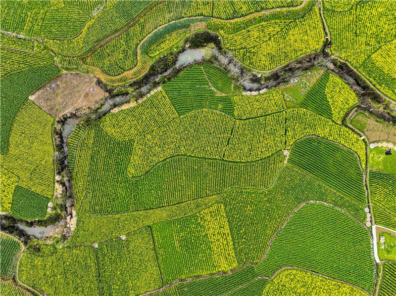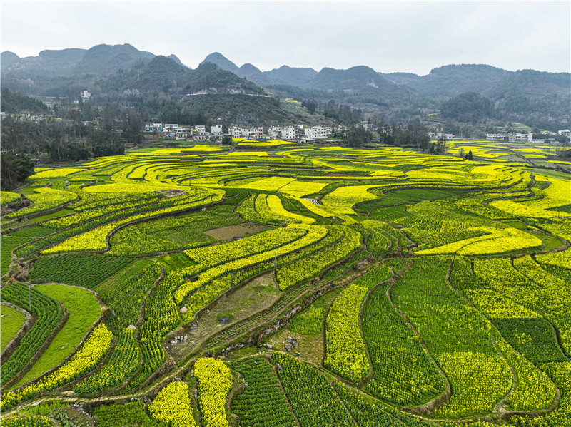 2023年3月6日,贵州省黔西市雨朵镇坝区油菜产业示范基地美如画卷。