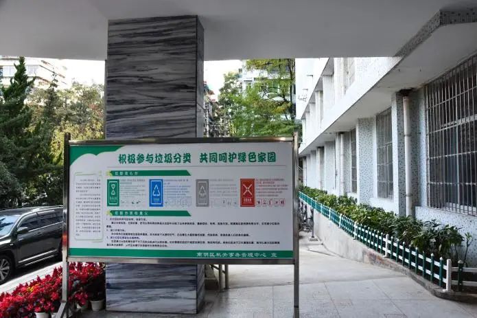 走进南明区政府机关大楼,可以看到入口处设置了垃圾分类科普宣传栏,一楼LED屏幕滚动播放着垃圾分类宣传片,在出入口展板上张贴了贵阳市垃圾分类情况问卷调查二维码,广泛收集辖区机关工作人员和前来办事群众对辖区垃圾分类工作的意见和建议。