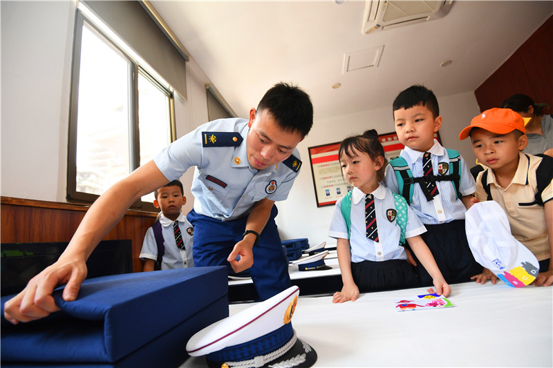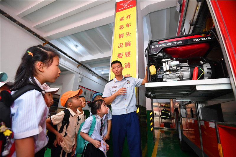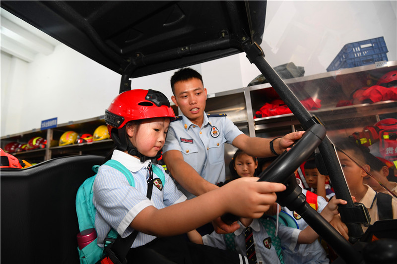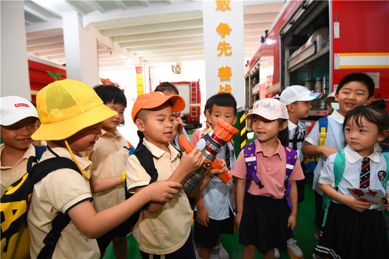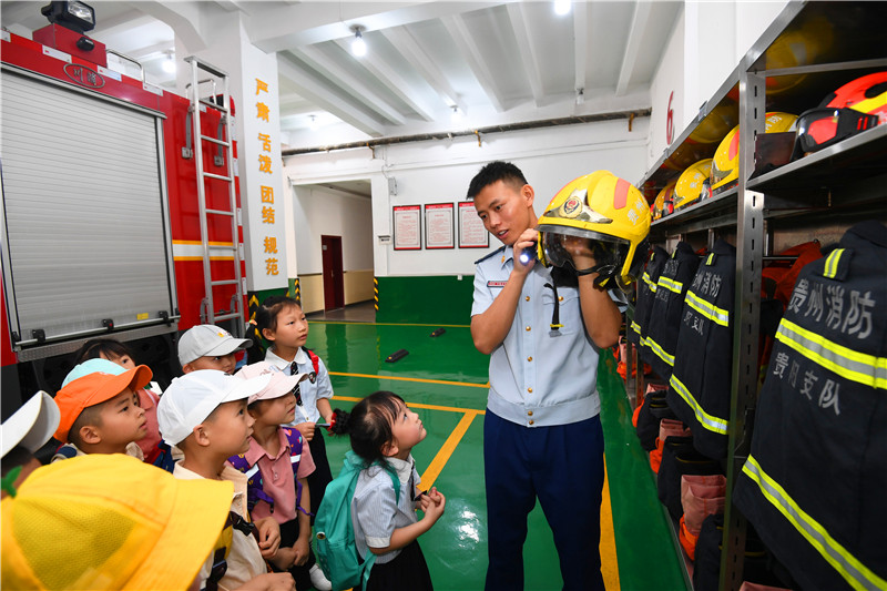 6月30日,贵阳市南明区消防救援大队迎来贵阳市第十一幼儿园的“萌娃参观团”,萌娃们与消防员面对面交流,近距离感受消防、接触消防、了解消防、学习消防知识。(赵松)
