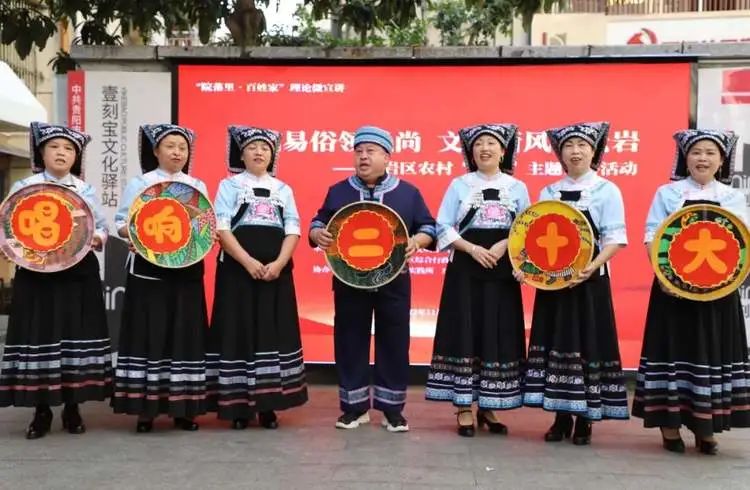 现场,金关街道的布依百灵志愿服务队,特意身着漂亮的民族服饰,带来了别致的簸箕画,以优美的布依山歌这种新颖别致的形式,把党的二十大精神传递到基层。“各族人民大团圆,布依儿女把歌唱。同心共圆中国梦,幸福生活万年长。”一句句通俗易懂的歌词,一段段优美动听的旋律,把活动推向高潮。