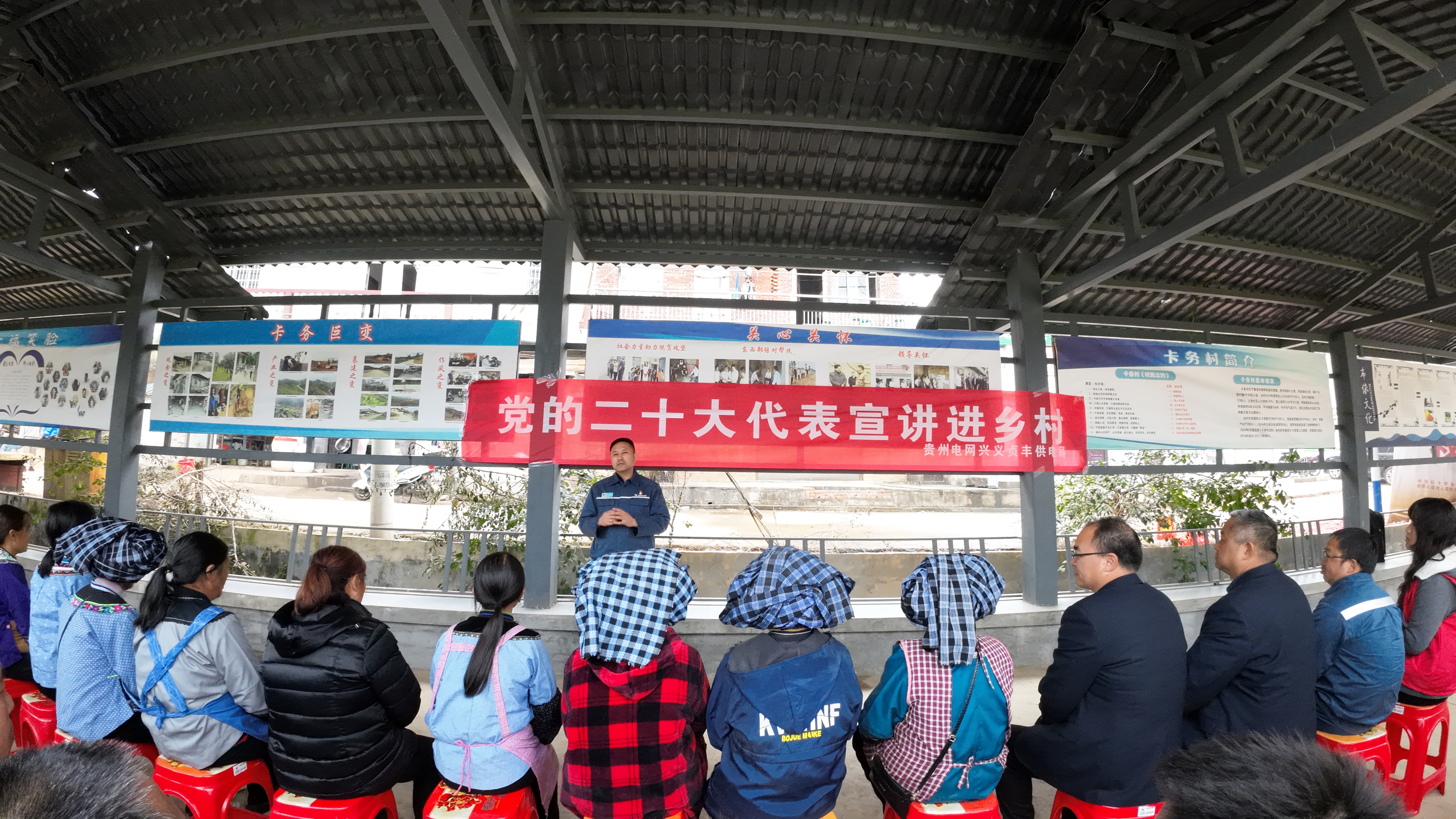 卡务村是贞丰供电局乡村振兴帮扶点之一。当天,一场别开生面的“院坝会”举行,40余名党员干部群众、驻村工作队队员聚集在一起聆听宣讲。龙福刚用亲切的“乡音”向群众传达“党音”,深入浅出阐释了党的二十大报告的丰富内涵和精神实质,让党的二十大精神深入基层干部群众心中,鼓励大家在新征程上砥砺奋进、接续奋斗,共创幸福美好生活。(黔西南日报 特约记者 皮佳丽)