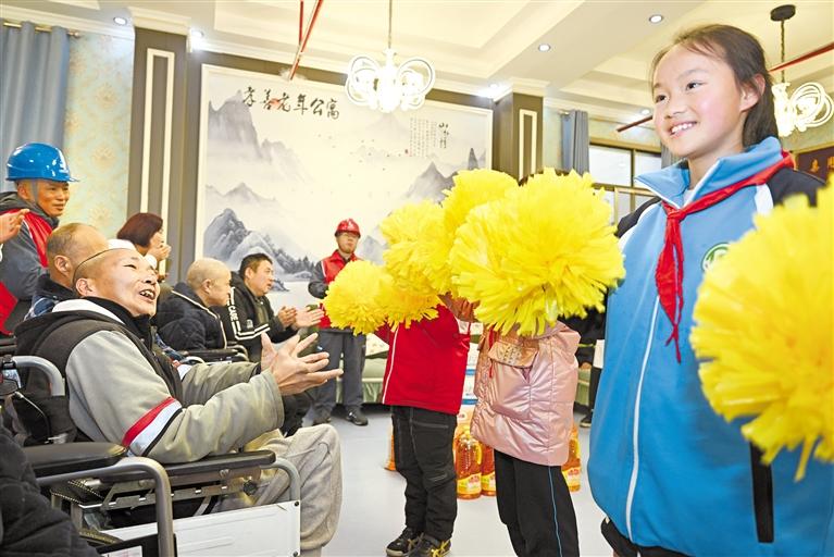 3月1日,由南方电网公司贵阳供电局“南网驿站”搭桥,贵阳乌当供电局党(团)志愿服务队携手贵阳市乌当区水田镇中心小学舞蹈队组成志愿服务队,走进乌当区孝善老年公寓开展贵阳供电局“向雷锋同志学习 南网蓝在行动”志愿服务活动。乌当供电局党(团)服务队为老人们送去油、米、牛奶等食品,陪老人们拉家常。(贵州日报天眼新闻记者 邓刚 摄影报道)