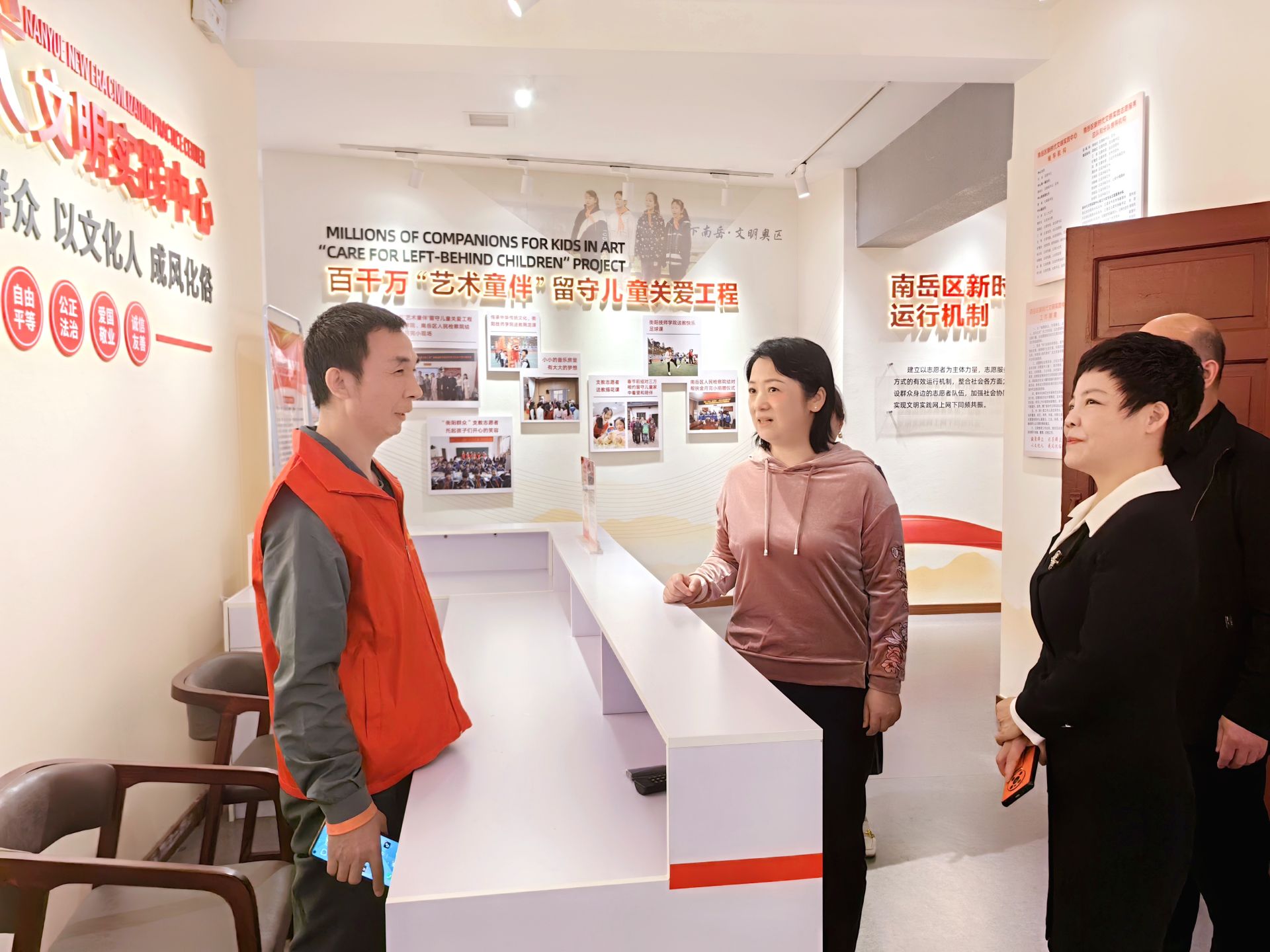 陈剑一行在衡阳市实地考察了南岳区新时代文明实践中心、南岳游击干部训练班陈列室爱国主义教育基地、岳阳东站交通场站、志愿服务等点位。认真听取南岳区新时代文明实践中心建设情况,详细了解南岳区新时代文明实践“建立文明实践信息互通机制、完善文明实践供需对接机制、探索评估激励机制”的具体工作经验做法,实地察看了主次干道公益广告宣传情况。