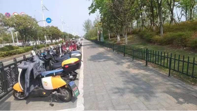 院内杂物乱堆;“三车”乱停;机动车占用消防通道;有“飞线”充电、随意晾晒现象;楼道内“三车”乱停,一楼防盗网内杂物乱堆。