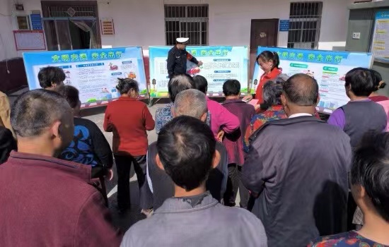 朱家庄村位于328国道两侧,路上来往车辆较多,为进一步提高群众道路交通安全意识,减少道路交通事故,朱家庄村新时代文明实践站联合孟楼镇交警中队到村开展道路安全知识宣传。