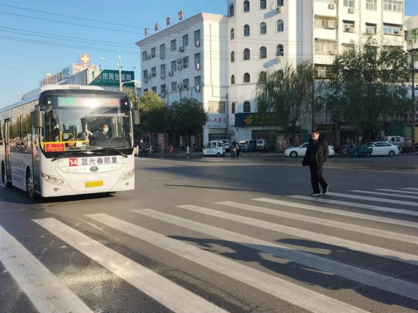 礼让斑马线是一个城市文明的标志,是广大人民群众幸福生活的和谐音符。11月10日,在驻马店市中华大道与光明路交叉口,一名14路公交车长礼让斑马线,得到路人称赞。小小的举动,为这座城市的文明加分。