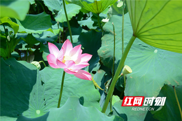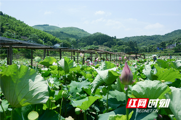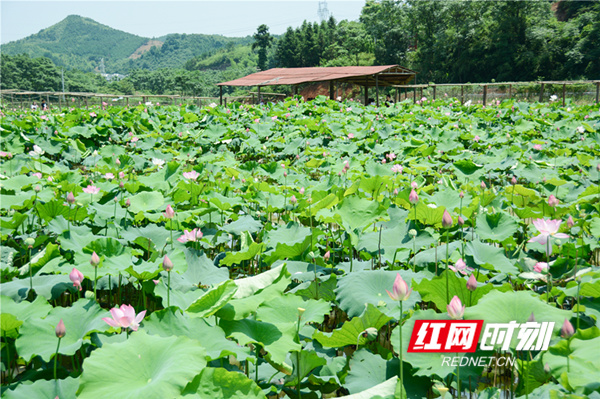 桂阳县正和镇解放村的荷花基地荷花含苞待放。图片来源:红网