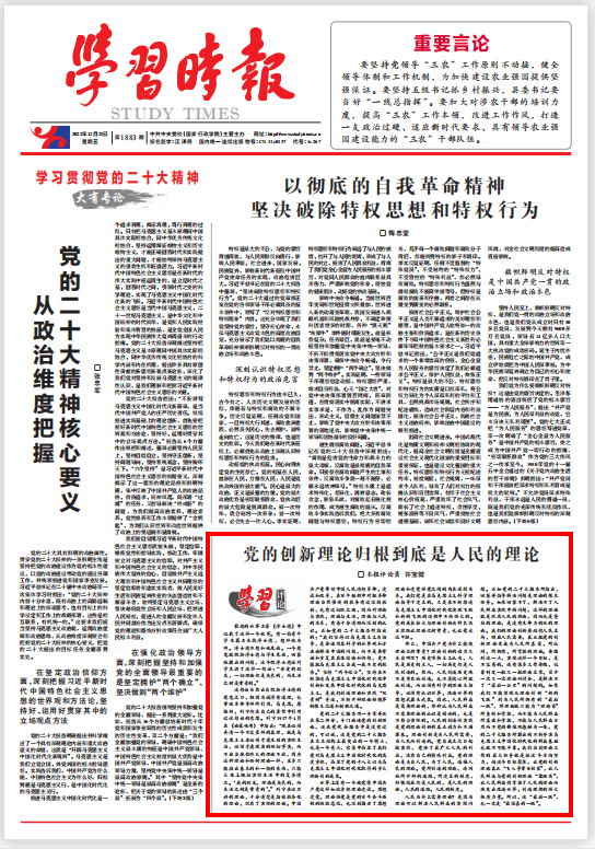 党的二十大报告用一专章并且在第二部分,专门论述党的创新理论,这在党代会报告中是没有过的,可以说,这是党的二十大报告在文本结构上最突出的一个特点,也是一个亮点,它集中凸显了我们党对马克思主义中国化时代化的高度重视,凸显了党的十八大以来马克思主义中国化时代化取得的重大理论创新成果。