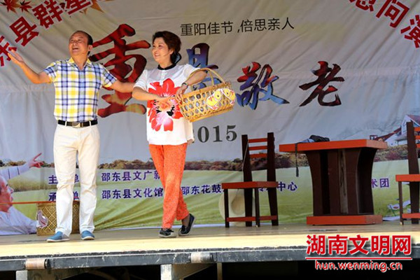 邵东县manbetx安卓手机 志愿者一行四十多人在县文广新局的组织带领下,专程赶到邵东县边陲贫困乡村义演,为老人们送去精彩的文艺节目及重阳佳节的祝福与问候。这些志愿者中,有县manbetx安卓手机 馆的群文工作者,有县花鼓戏保护传承中心的专业演员,也有来自全县各界的文艺爱好者,表演了《咱老百姓》、《邵东人凭什么》、《刘大娘笑呵呵》歌曲和《多嘎多耶》、《板蓝花儿开》、《陪你一起看草原》、《新歌越唱越红火》舞蹈及《偷鸭》花鼓戏等十五个精彩节目。在慰问演出时,八十多岁的李爷爷笑呵呵的说:“太好了,儿子在外忙生意,不能回家过节,感谢manbetx安卓手机 志愿者来和我们共度重阳佳节,太感动了!大家辛苦了,谢谢你们!”