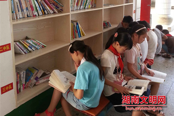 湖南文明网9月15日讯(通讯员 李娜)浏阳市占佳完小为了营造书香氛围,利用一楼大厅良好的条件,新建了一个开放式书吧,每位同学捐书一至两本,大厅边的窗前为孩子们摆放条凳,课余时间可以让孩子们尽情地阅读。