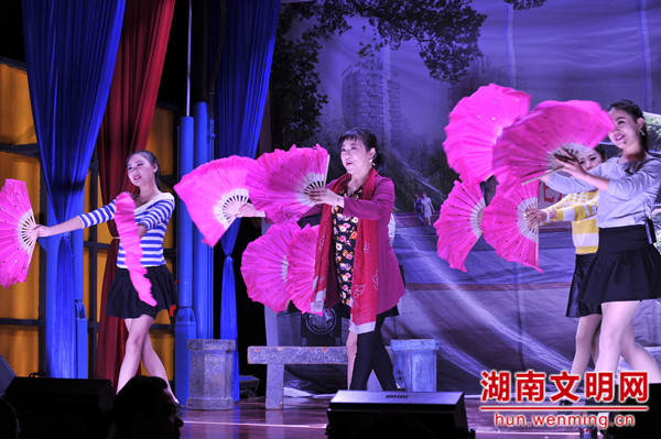 湖南文明网10月29日讯(通讯员 谭娟)“十赌有九输哩,冒看见哪一家是靠赌博发财的……”舞台上,饰演调解干部的演员苦口婆心,舞台下,围观的群众都连连称是,新府社区的陈老对旁边的小孙子说:“孙啊,从细就要学好啦,你看这黄赌毒害死人咧。”