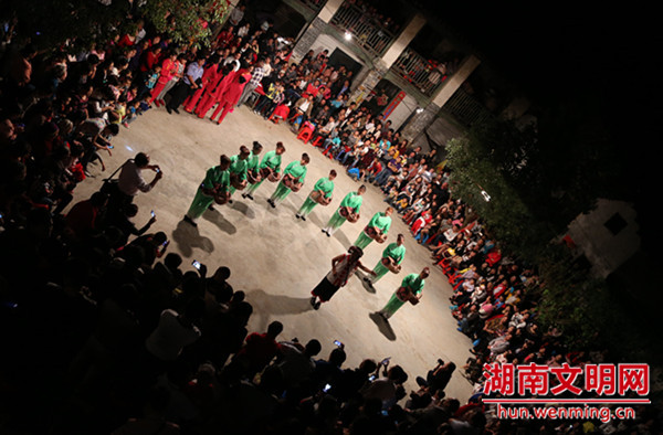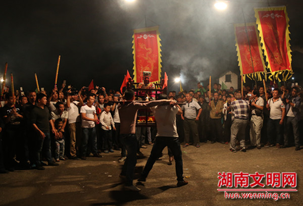 湖南文明网10月23日讯(通讯员 雷新龙)10月21日,郴州桂阳县龙潭街道洞水村开展了传统的民俗活动——“闹太祖公”。这一天是该村周氏族民太祖公的生辰日,又恰逢九九重阳节,族民进行隆重的“祭祖”、“闹祖”活动,以示对祖先的敬畏,祈佑风调雨顺,人丁兴旺。据周氏族谱记载,祭祀活动从明代(1369)开始,世代相传,至今已有600多年历史。