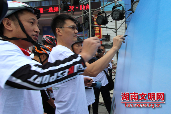 “今天是无车日,倡议大家少开一次私家车,多乘一次公交车,文明驾驶,绿色出行……”全体志愿者活动宣读了无车日活动承诺书和倡议书,进行了现场签名。新晃县以完善科学的城市交通体系、实施有效的交通需求引导、推广步行和自行车交通为抓手,促使越来越多的市民主动选择绿色出行方式。