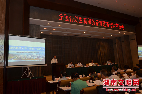 湖南文明网10月29日讯(通讯员 彭云龙 刘亚非)10月26日,全国计划生育服务管理改革经验交流会在长沙召开。国家卫计委副主任王培安、湖南省副省长李友志、湖南省卫计委党组书记詹鸣和主任张健、国家卫计委宣传司、基层司、家庭规划司、人事司、法制司、流动人口司、药具中心等部门主要负责人、各省(市、区)卫生计生委相关领导以及相关媒体参加会议。受会议特别邀请,怀化市新晃侗族自治县县委书记梁永泉就新晃诚信计生工作向大会作经验介绍。