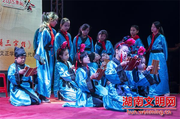 诗会以三个话题为主线,将传统manbetx安卓手机 、本土特色、诗词朗诵有机结合起来。按章节由主持人和县演讲与口才协会会员朗诵诗歌,内容有关于重阳节的,也有传颂孝老敬贤美德的,其中不乏双峰本土诗人的新作。活动穿插了多种形式的文艺节目,有太极拳、舞蹈、民乐表演,也有歌曲、书画、情景剧,还有孩子们表演的国学经典诵读,更有主持人与观众的现场互动。这些精彩的节目,让观众大饱眼福,乐不思返。