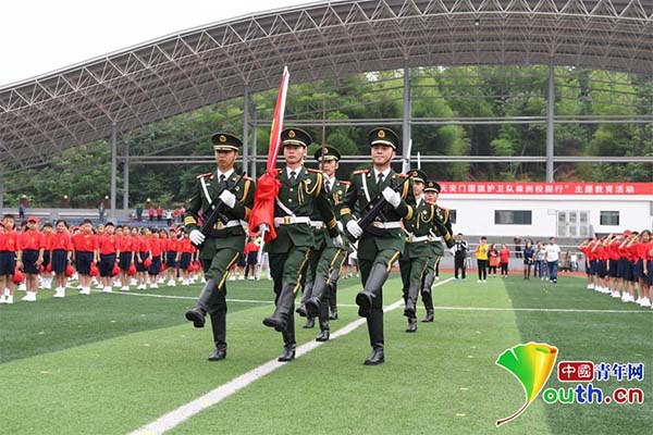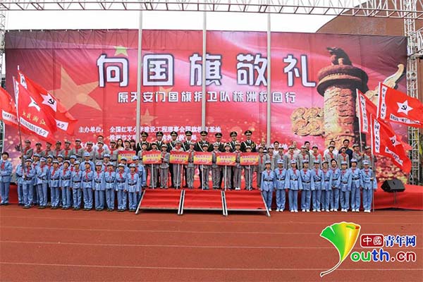 5月24日,“国旗在我心中 向国旗敬礼——原天安门国旗护卫队株洲校园行”大型国旗教育活动在株洲市举行。 中国青年网通讯员 熊伟 摄