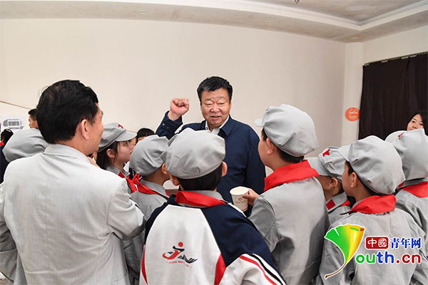 株洲六所红军小学同学们在听取全国红军小学建设工程理事会副理事长兼秘书长方强讲述国旗与红军小学的故事。 中国青年网通讯员 熊伟 摄