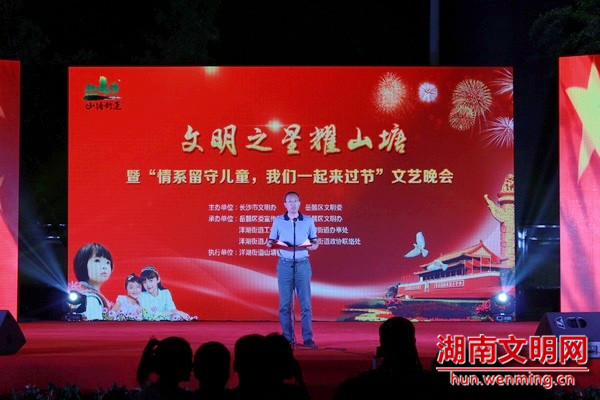 9月29日晚,“文明之星耀山塘”暨情系留守儿童活动在长沙洋湖街道山塘村举行。捐资助学的范术良、勤劳善良的理发能手聂文、十三年如一日照顾患病公婆的胡仁华、教子有方的好父亲刘国良等“友爱之星”、“贤惠之星”、“孝顺之星”、“家教之星”纷纷闪亮登场。他们都是山塘村土生土长的村民,他们的优秀事迹和高贵品质刮起了洋湖街道的“文明之风”。