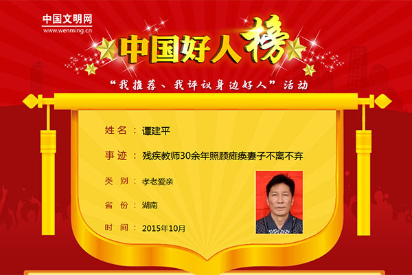 “孝老爱亲”好人谭建平:残疾教师30余年照顾瘫痪妻子不离不弃