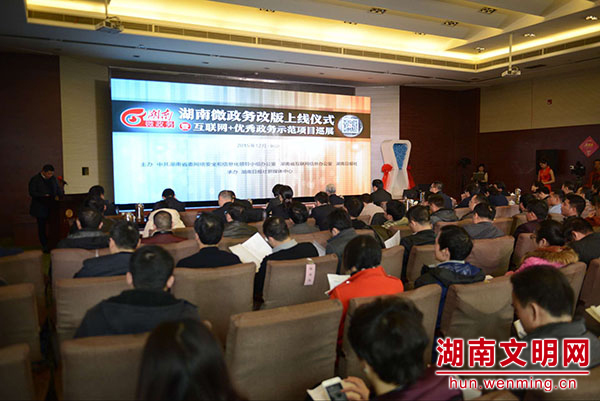 湖南文明网12月22日讯(记者 李慧 摄影 杨杨)21日上午,湖南首个全省层面的政务微信平台“湖南微政务”正式改版上线运行,旨在打造湖南省“不下班的网上政府”。湖南微政务改版上线仪式暨互联网+优秀政务示范项目巡展仪式上13个优秀政务示范项目被授牌。