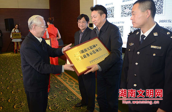 湖南省委副秘书长、省委宣传部常务副部长李发美为优秀政务示范项目授牌