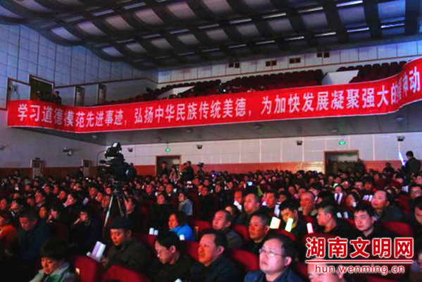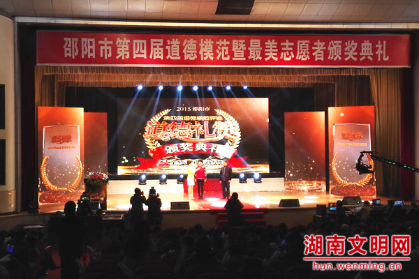 近年来,邵阳市以培育和践行社会主义核心价值观为根本,大力推进公民道德建设,广泛开展内容丰富、形式多样的道德实践活动,涌现出了一大批先进人物。为集中展示邵阳市公民道德建设的丰硕成果,更广泛地动员人民群众支持和参与道德建设,邵阳市文明委组织开展了全市第四届道德模范暨最美志愿者、最佳志愿服务组织评比活动。经过群众推荐、媒体公示、公众投票、评委评审、市文明委审定等程序,决定授予黄民能等10人“邵阳市道德模范”荣誉称号,授予释常修等7人“邵阳市道德模范提名奖”荣誉称号,授予周晓龙等4人“邵阳市最美志愿者”荣誉称号,授予绥宁县河口苗族乡河口村志愿服务队“邵阳市最佳志愿服务组织”荣誉称号。颁奖典礼上,第五届全国道德模范提名奖获得者,隆回县石门乡排头村村民彭银凤被授予特别奖。