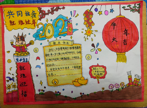 创作感言:我为2021年制作了一份手抄报,倡议大家将文明过年铭记于心,将就地过年、 戴口罩出门随时付诸行动,将光盘行动进行在每一个餐桌上。祝大家过一个幸福感 、安全感满满的浓浓中国年!