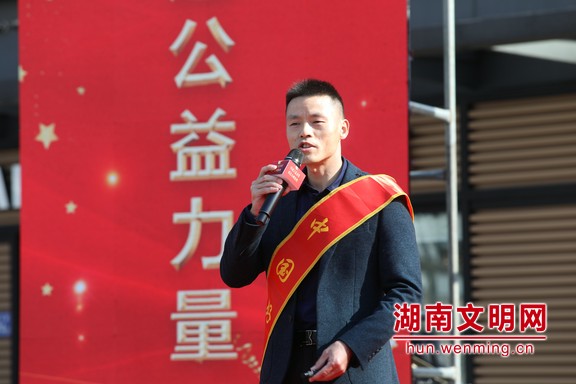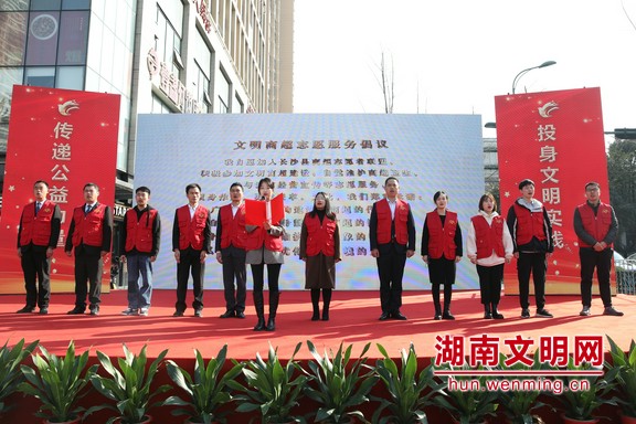 长沙县商超志愿者联盟代表发出文明商超、志愿服务的倡议。图片来源:湖南文明网
