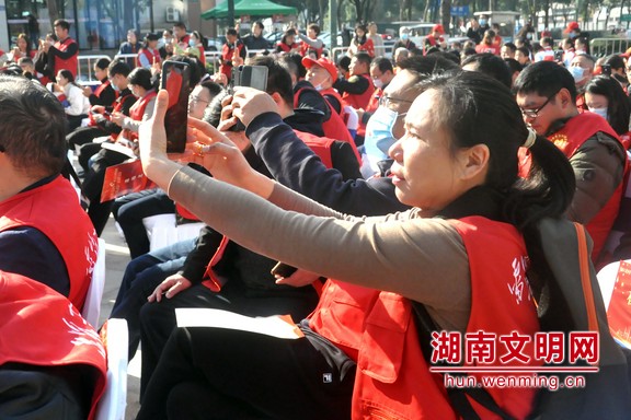 台下观众认真聆听并拍照留念。图片来源:湖南文明网
