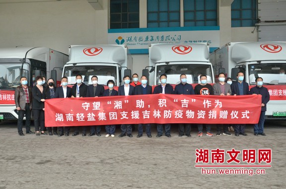 湖南省轻工盐业集团支援吉林省防疫物资启运。图片来源:湖南文明网