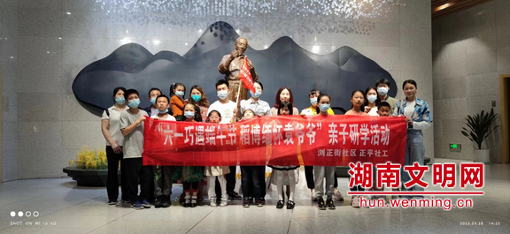 5月28日,定王台街道浏正街社区联合长沙市正平社工开展“六一巧遇端午节 稻博缅怀袁爷爷”亲子研学活动,大家参观了世界首个大型水稻博物馆——隆平博物馆,活动不仅培养孩子们珍惜粮食、爱护生态环境的品德,还激发大家的民族自豪感和爱国情感。