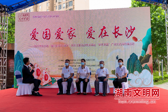 岁岁端午节,缕缕文明曲。5月31日上午,马坡岭街道“爱国爱家 爱在长沙”——2022年长沙市“我们的节日·端午”活动现场,邀请抗疫兄妹组周辉、周帅一家参加最美家庭事迹访谈。