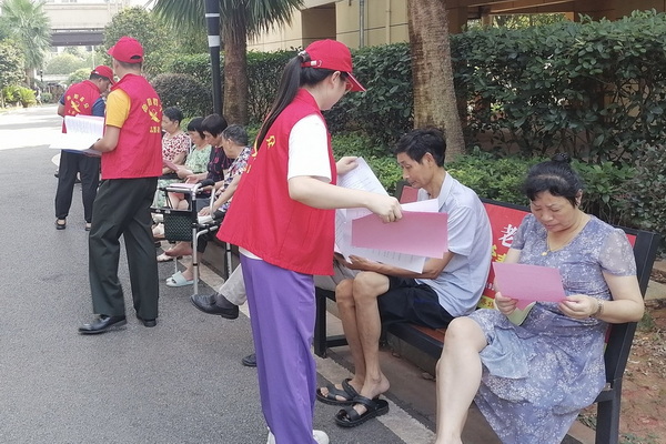 志愿者们在小区内发放文明祭祀倡议书。图片来源:红网时刻