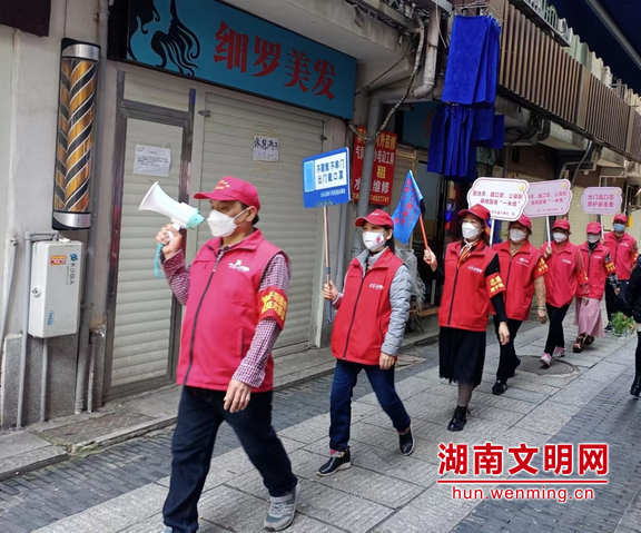 在坡子街街巷里,有一支亮丽的巡逻队——德望志愿服务队。他们戴着红袖章、身着红马甲、拿着小喇叭,进行防范非法集资、禁毒、垃圾分类等知识宣传。他们平均年龄50多岁,却很好地融入在了密集的年轻人流中,为年轻人提供“家门口”的服务。