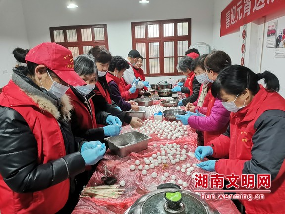 贾远满参与社区元宵节活动,包汤圆送独居老人。