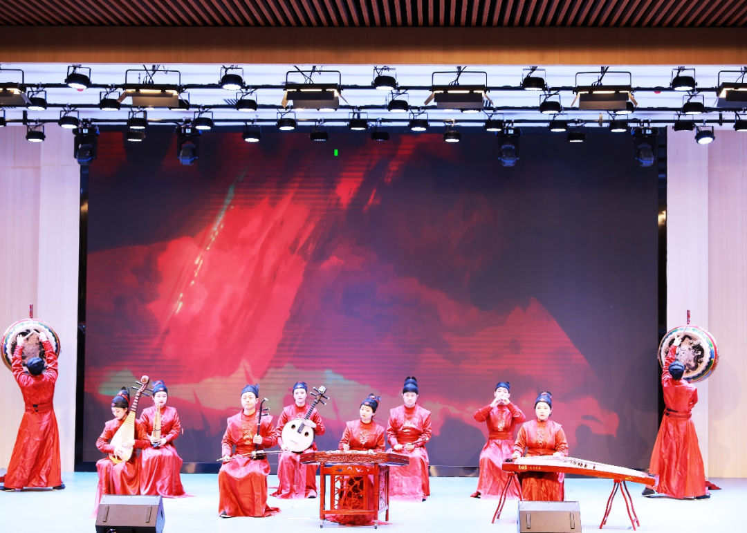 西安外事学院鼓乐团演奏的《破阵乐》,气势雄浑、激荡人心,把整场展示活动推向高潮。