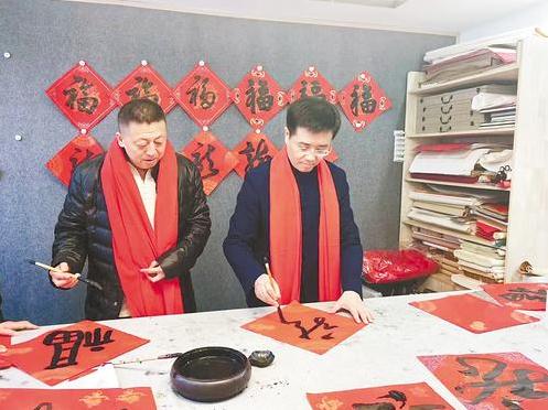 2024年1月1日,“manbetx安卓手机 名家陪你过新年”活动中,manbetx安卓手机 名家与市民共享manbetx安卓手机 大餐,将代表祝福的“福”“龙”字送给市民朋友们。河北日报记者 薛惠娟 摄