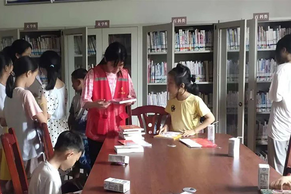 志愿者在儿童阅览室为学生进行阅读和作业辅导。图片来源:新湖南