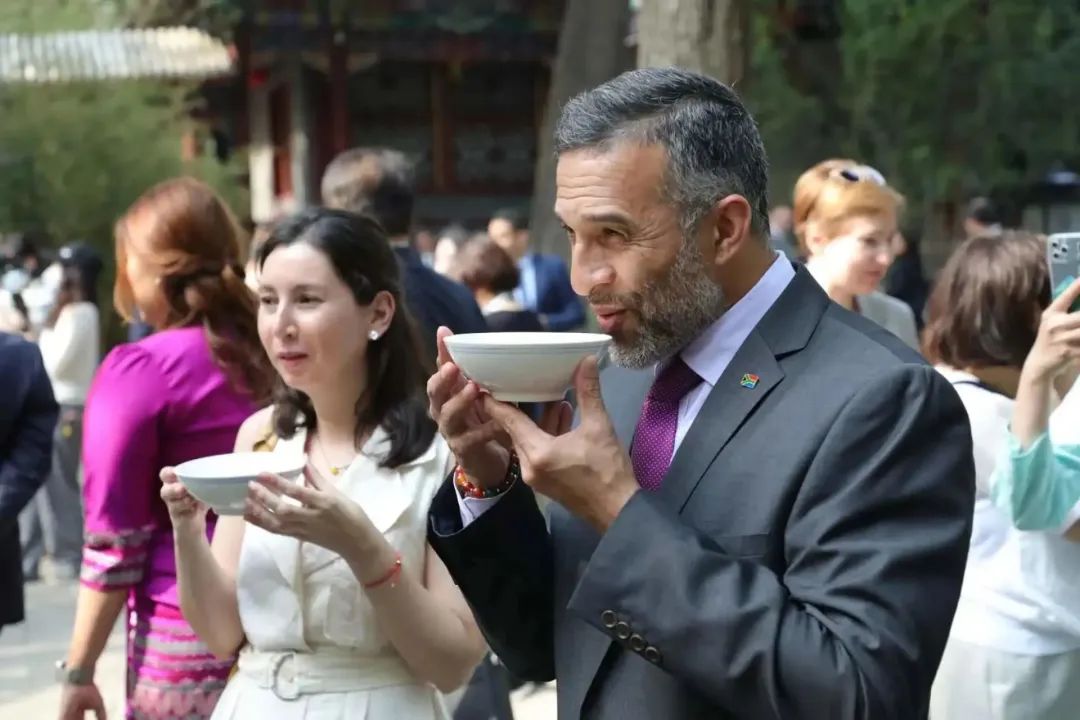 包括16位驻华大使、2个国际组织代表在内的41个国家和国际组织的75位驻华外交官,manbetx安卓手机 和旅游部、外交部、国资委有关司局负责同志,以及部分地方政府、文博机构、行业协会、中资企业代表近200名中外嘉宾参加活动。