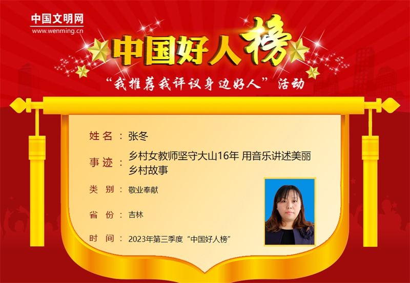 歌者继其声,师者继其志。张冬只想做一名能够发现和传承音乐的教师。张冬说:“我是一名教师,我要用音乐照亮乡村孩子的心灵、用教育讲述美丽乡村的故事。”