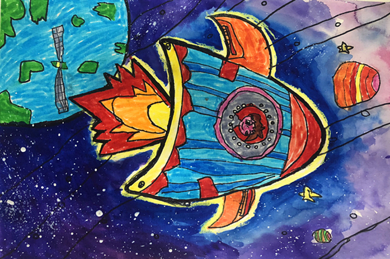 作品说明:《畅想太空》。当我们还是小孩的时候,会有很多的奇思妙想,想长大,想当宇航员,想飞上太空......做一个科学家,去探索太空的奥妙和各种不同星球的秘密,让我们更多的了解世界,了解未来!