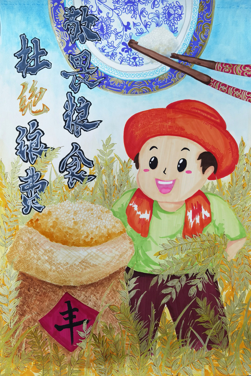 作品说明:《敬畏粮食,杜绝浪费》。“一粥一饭,当思来不易,半丝半缕,恒念物力维艰。”有史以来,珍爱粮食便是我们中华民族的优良传统,念食物之来之不易,弘扬中华之优良传统,坚决杜绝浪费。