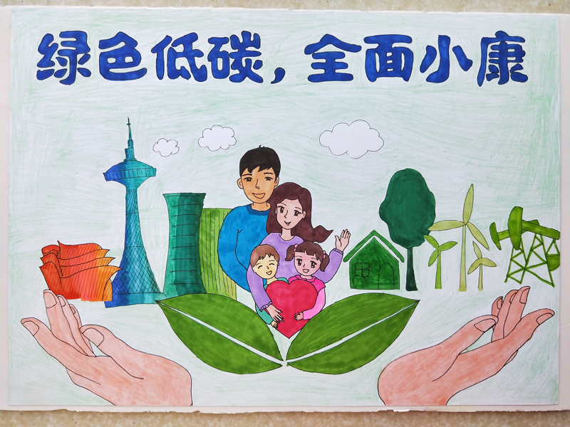 作品说明:《绿色低碳 全面小康》,提倡积极践行绿色出行、垃圾分类、光盘行动等低碳行为,呼吁市民从点滴做起,为美丽中国绿色发展助力!